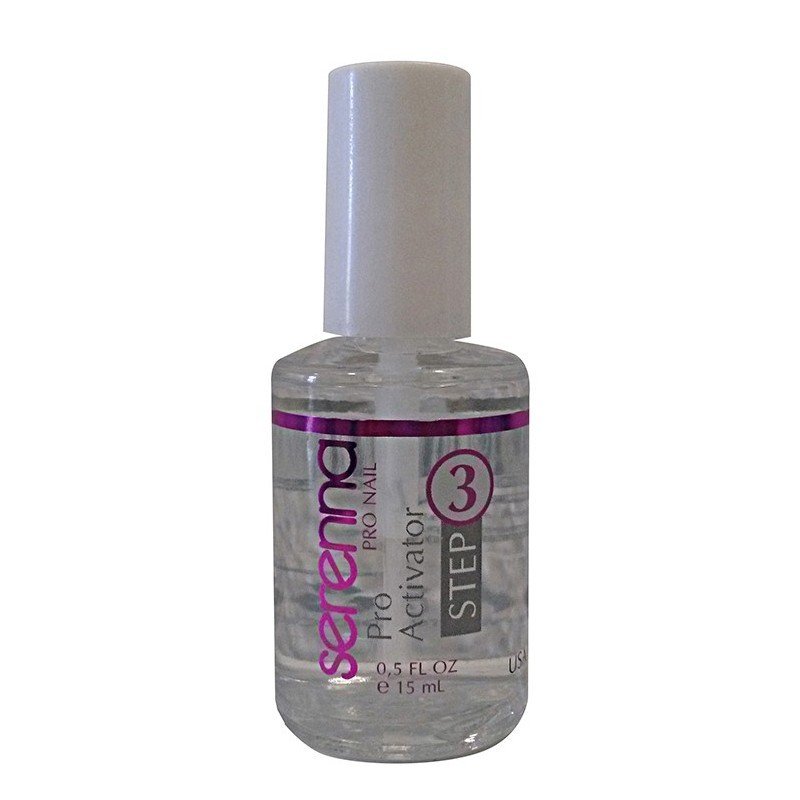O Step 3 – Pro Activator Serenna é usado nas unhas dipping para acelerar e endurecer a Pro Base e a Pro Finish sem prejudicar o acabamento das unhas de imersão em pó.